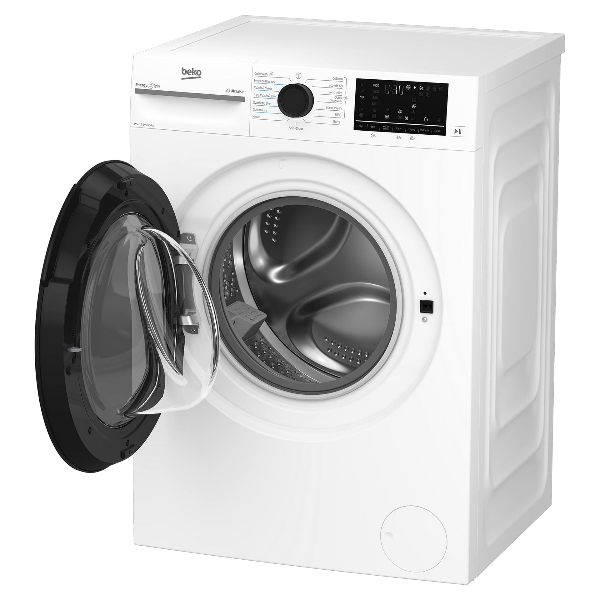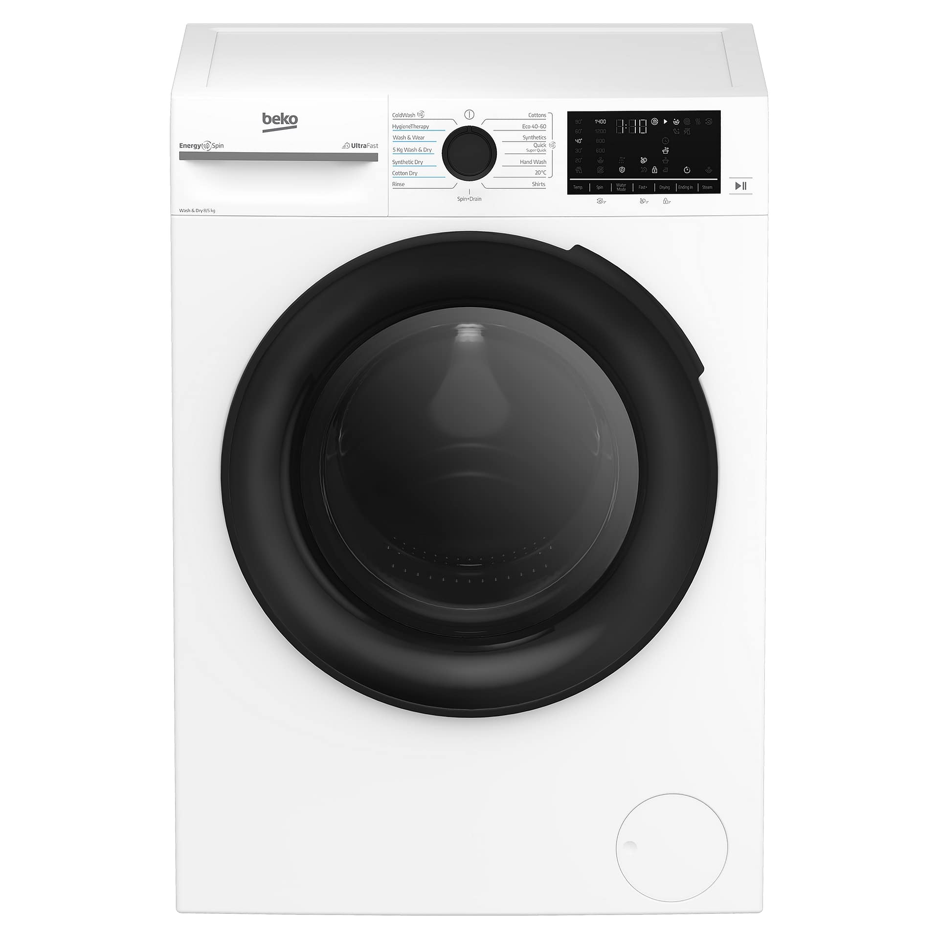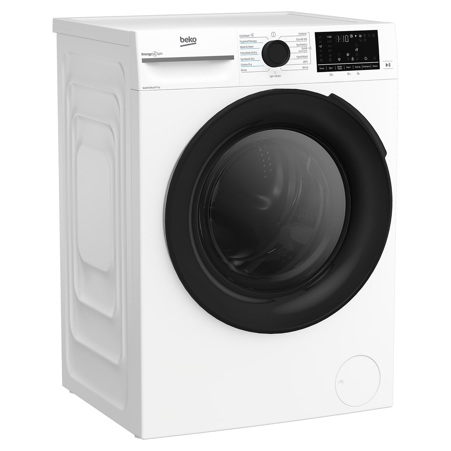 This Beko freestanding washer dryer has an impressive 8kg washing capacity and a 5kg drying load and is finished in white.