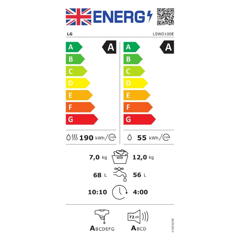 This superb LG Signature washer dryer has an impressive 1600rpm spin speed, 12kg wash load and a 7kg drying capacity. With LG’s Auto Dosing system there’s no need to add detergent each time you wash, the machine will add just the right amount for each load. It also features their unique 6 Motion Direct Drive technology which moves the wash drum in multiple directions, giving fabrics proper care whilst getting them ultra clean. If it’s efficiency you’re looking for look no further, this model features Heat Pump technology so it’s A energy rated for the complete wash & dry cycle!