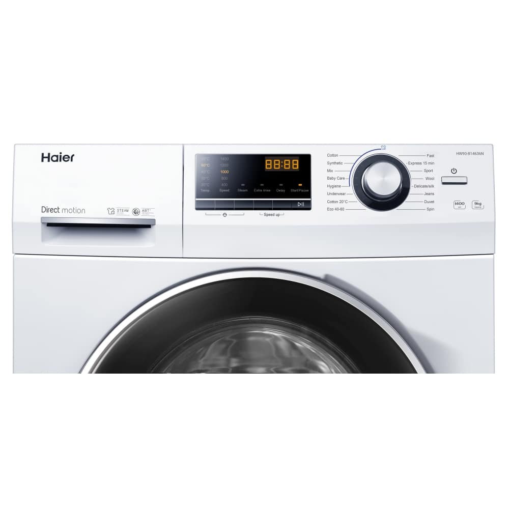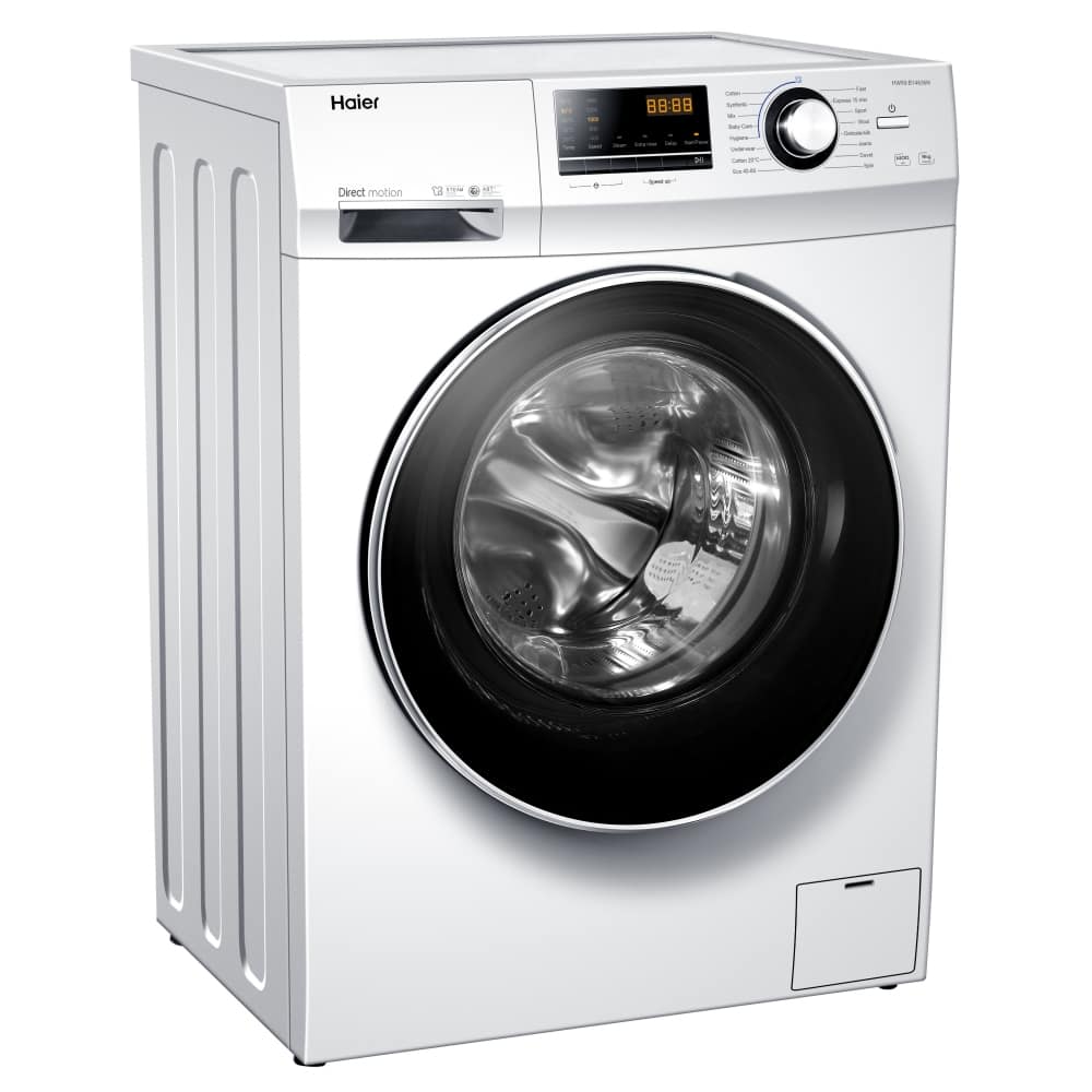 This 10kg washing machine from Haier has a 1400rpm spin speed and an A energy rating. Designed to provide professional level laundry results in the comfort of your own home, it features 16 wash programmes from express 15 minutes to eco wash. You’ll be in complete control with the additional features such as extra rinse and speed up. This model features a direct drive motor, which is less prone to breakdowns and has a longer lifetime due to its beltless design. It’s powerful but super quiet, Haier once used it to power a Formula One car! With an LED display and crisp, clean white finish, this Haier washing machine is the perfect choice for any modern home.