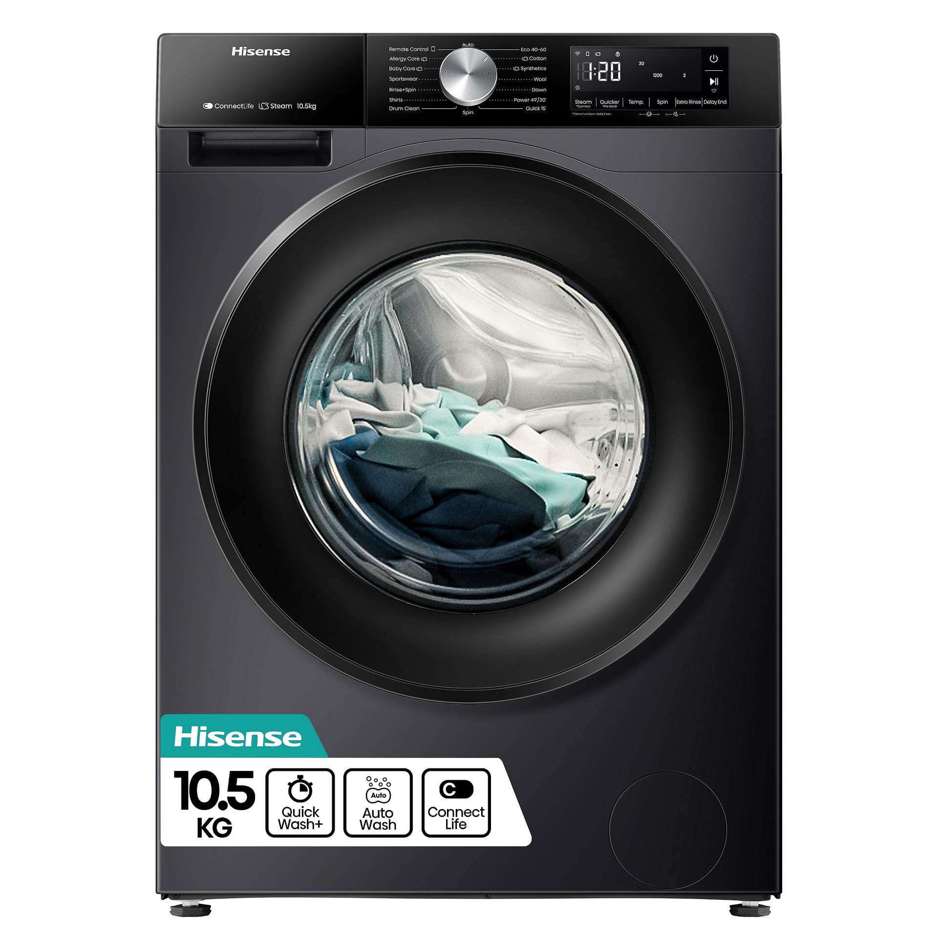 Hisense WF3S1043BB3 10.5kg 3S Series Washing Machine 1400rpm – BLACK