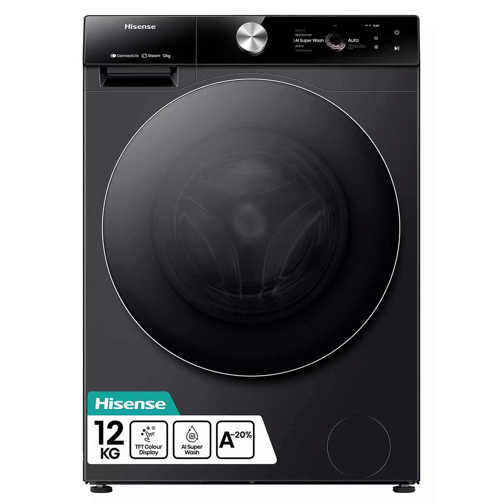 Hisense WF7S1247BB 12kg 7S Series Autodose Washing Machine 1400rpm – BLACK