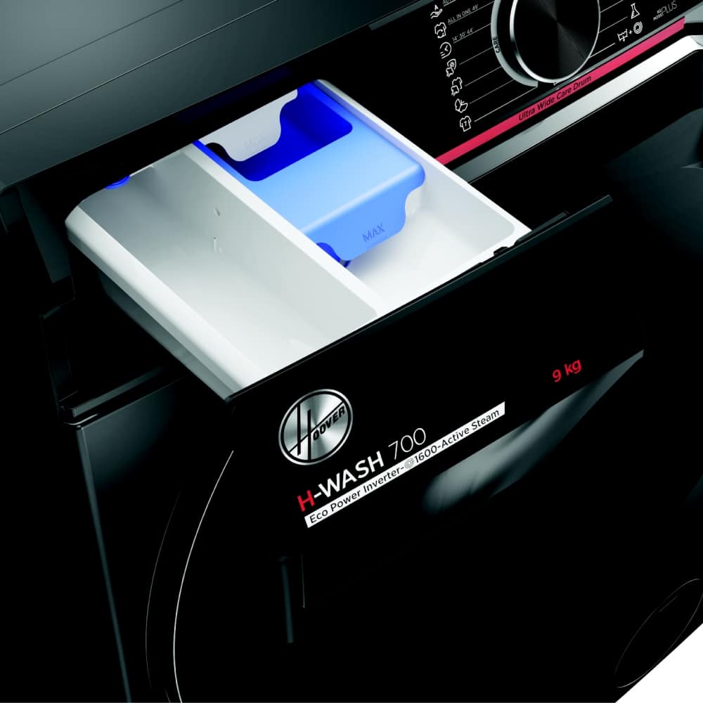 This Hoover washing machine has an impressive 9kg capacity and a 1600rpm spin speed and is finished in graphite.