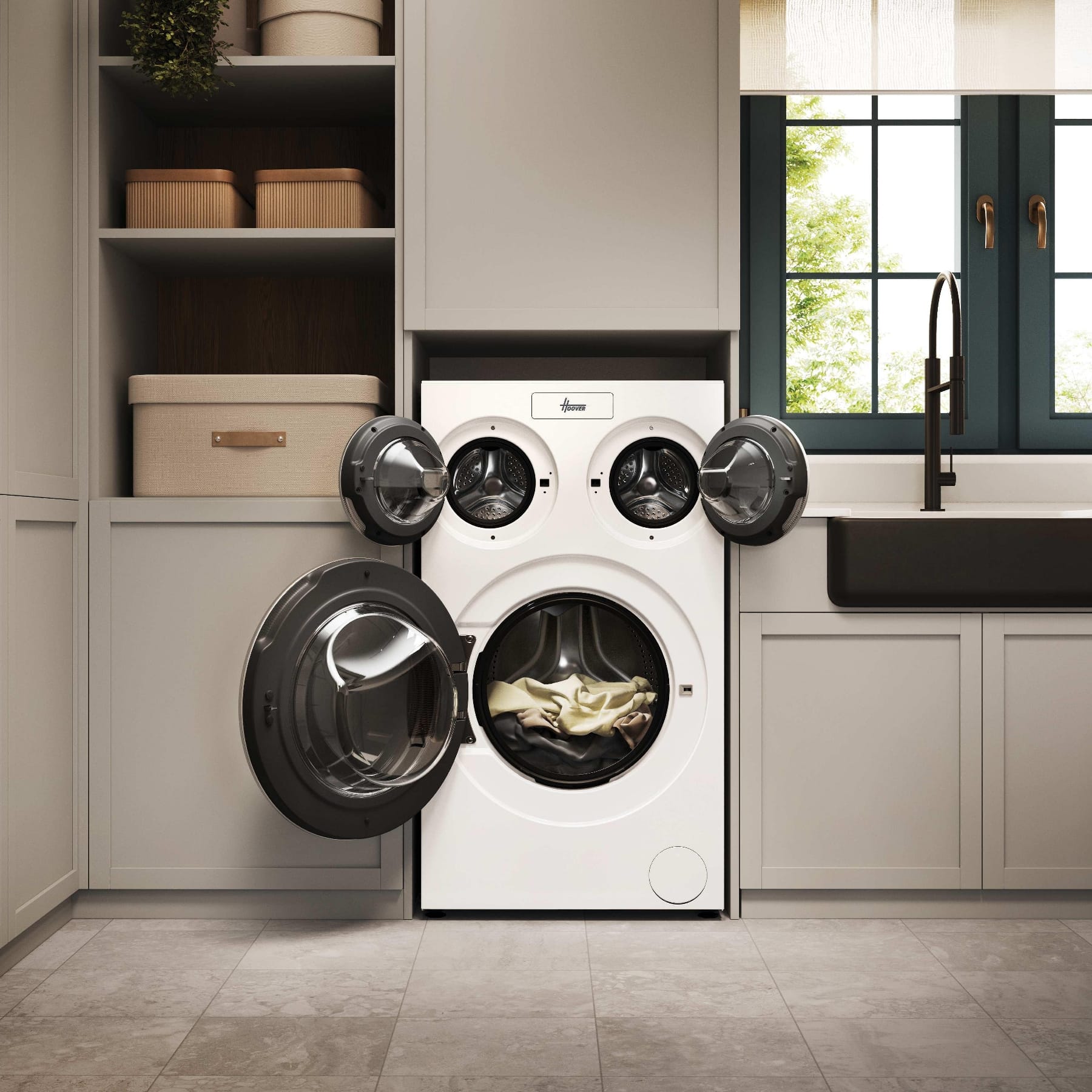 Reliable and eco-friendly, this Hoover Autodose washing machine has an impressive 12kg total washing capacity split across 3 drums with a variable spin speed of 1400rpm and is finished in white. With a steam function and a 1-24 hour delay timer, make laundry a breeze with Hoover!