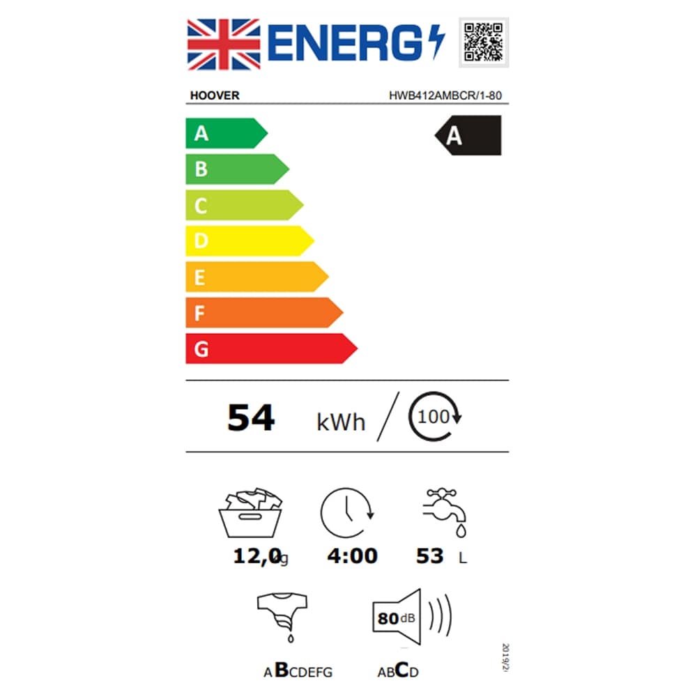 This Hoover washing machine has an impressive 12kg capacity and a 1400rpm spin speed and is finished in graphite.