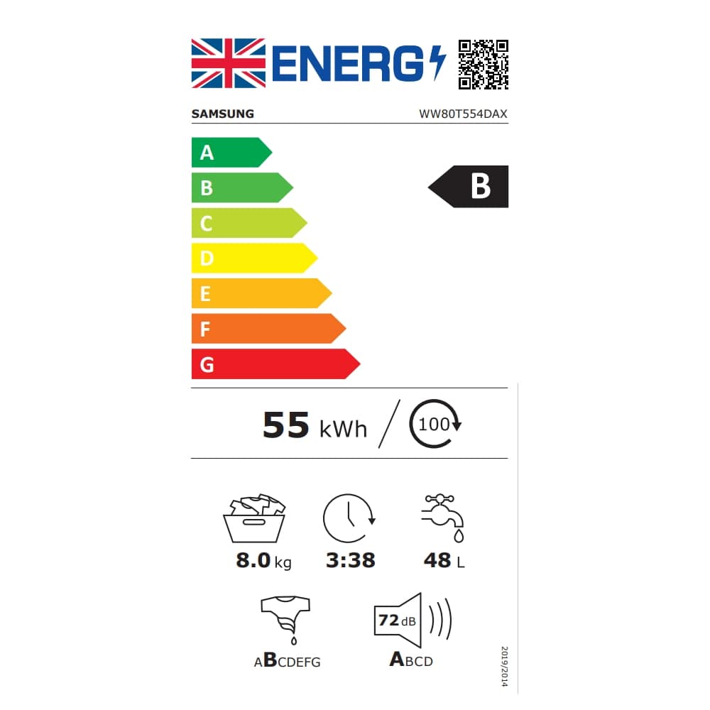 Samsung WW80T554DAX 8kg Series 5+ Ecobubble AddWash Washing Machine 1400rpm – GRAPHITE