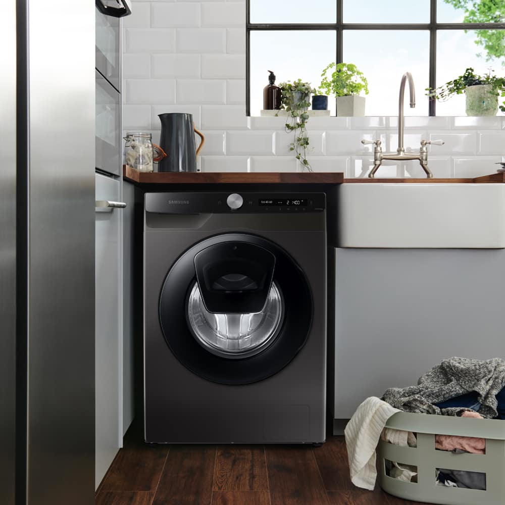 Washing just got smarter with this Ecobubble washing machine from Samsung! Innovative Ecobubble technology is designed to make your life easier, cleverly using bubbles to wash clothes at a cooler temperature, helping you bring down your energy bills. This washing machine will make your life easier with AddWash, a feature which allows you to quickly add anything you’ve missed from the laundry basket. No more single socks! Control your laundry from the comfort of your phone: schedule your washes and get suggestions on the perfect setting for your families habits. This washing machine obliterates 99.9% of bacteria, giving you the cleanest clothes and peace of mind. It boasts a generous 8kg wash load and is finished in stylish graphite.
