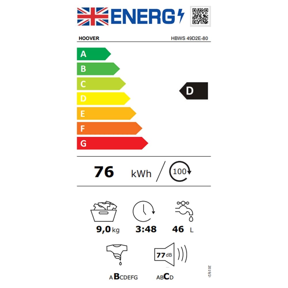 Hoover HBWS49D2E 9kg Fully Integrated Washing Machine 1400rpm