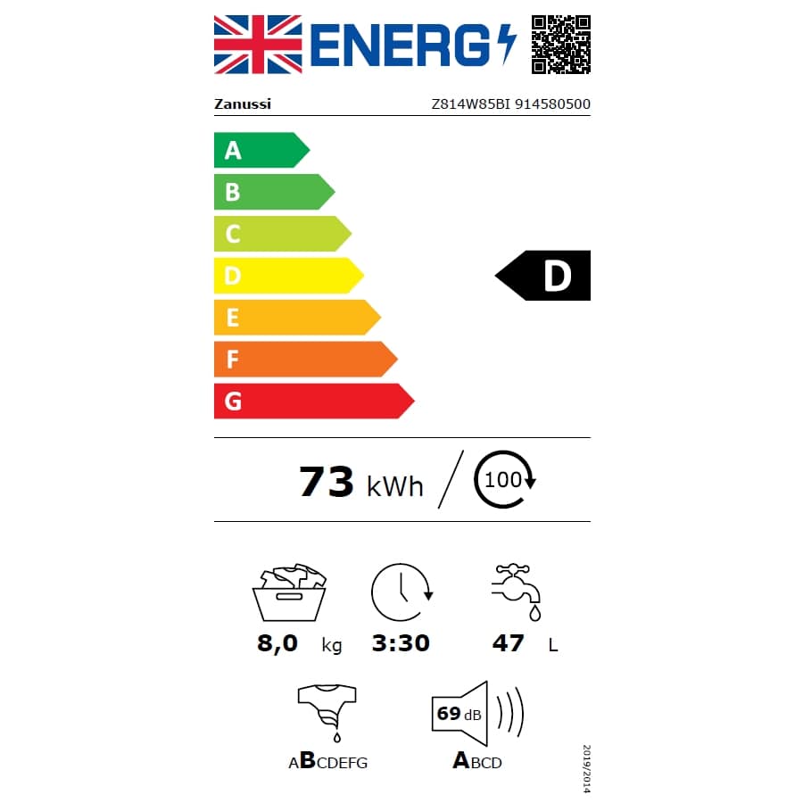 Zanussi Z814W85BI – EX DISPLAY 8kg Integrated Washing Machine 1400rpm