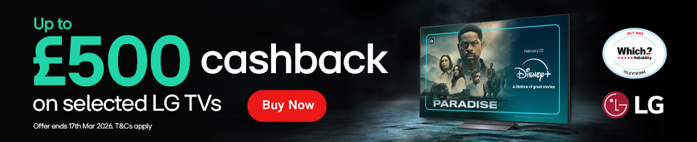About this promotion: Purchase a qualifying LG TV and claim up to £500 cashback from LG. You must make your claim before 23:59 GMT on 31st May 2026.