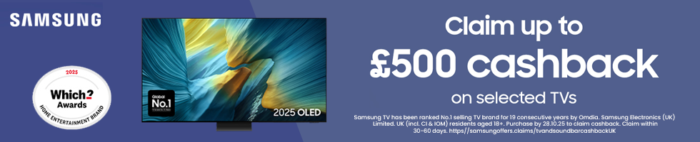 About this promotion: Claim up to £500 cashback when you buy selected Samsung TVs and up to £400 on selected Soundbars.