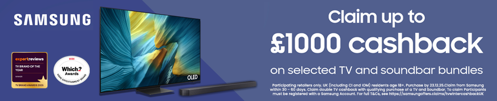 About this promotion: Purchase a selected Samsung TV and soundbar bundle and claim up to £1000 cashback.