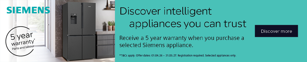 T&Cs apply. Selected models only. For more information and to claim your warranty, please visit the Siemens website here.