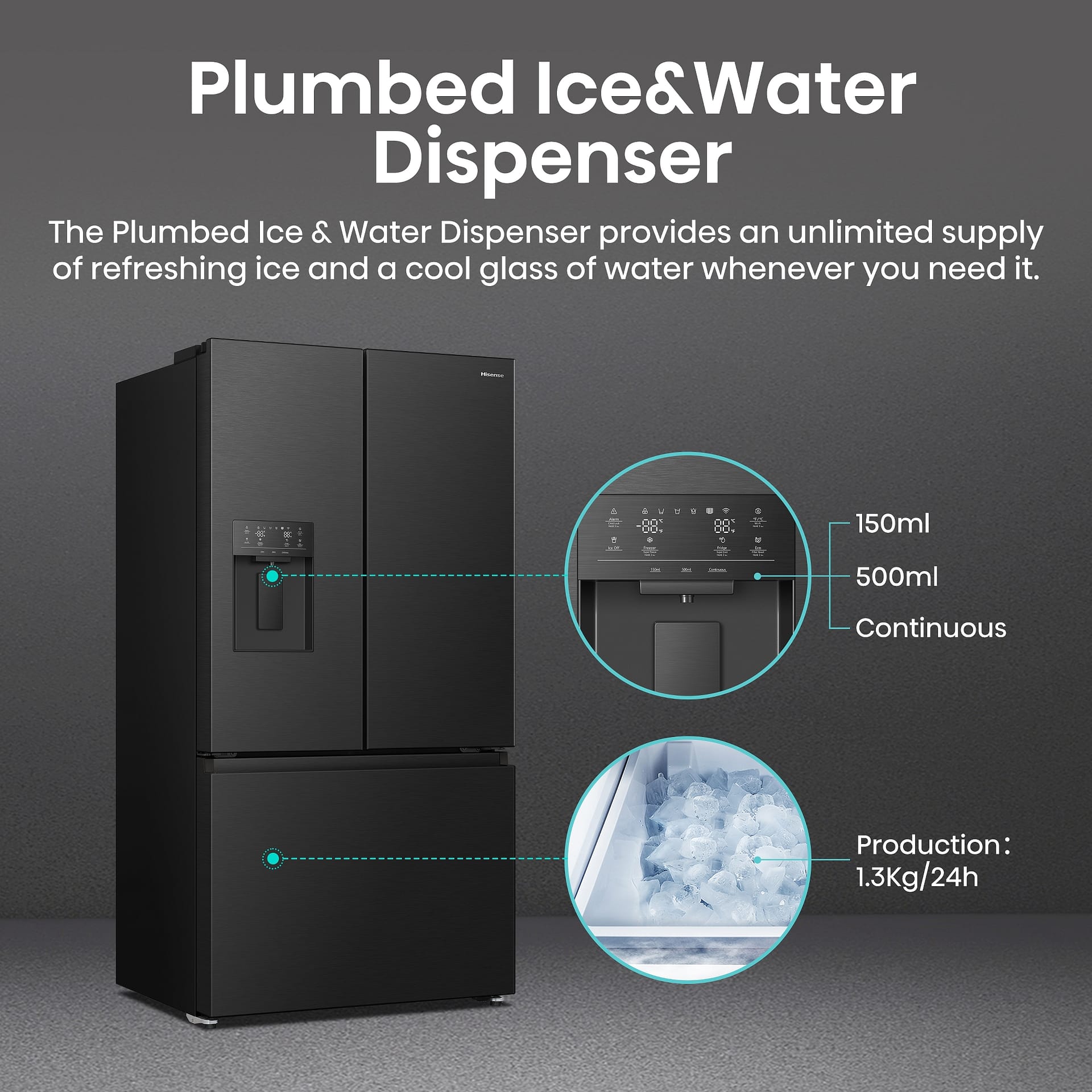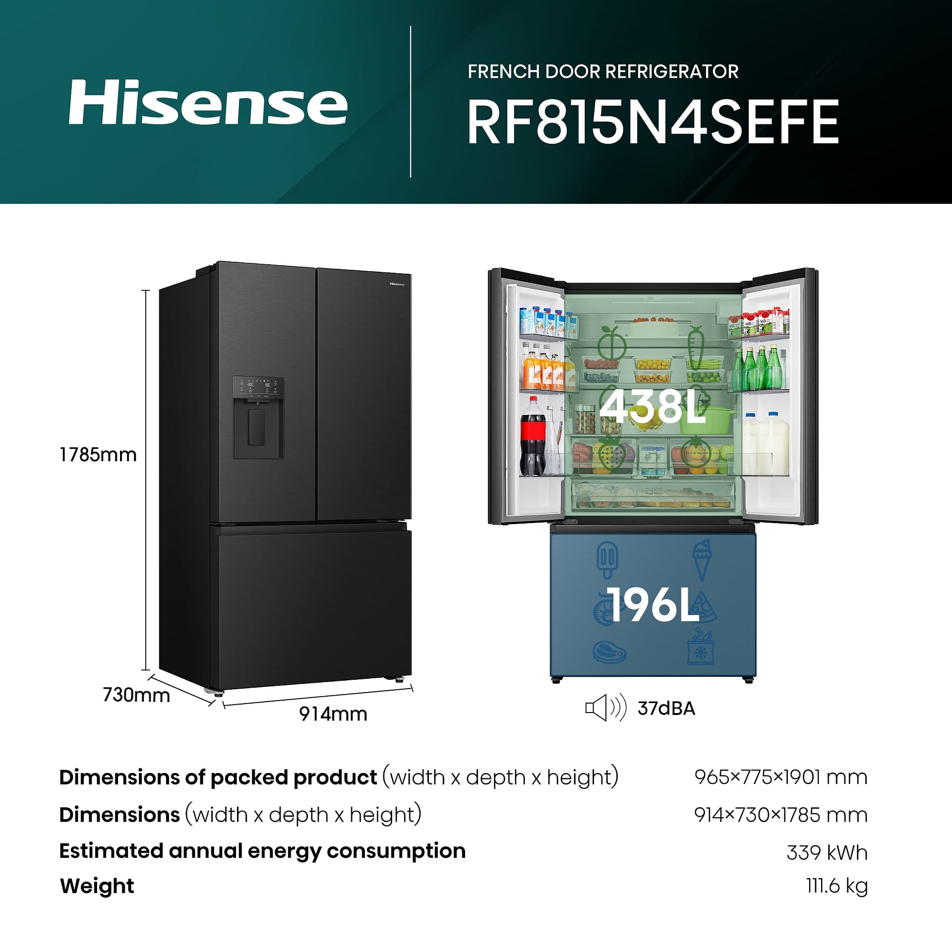 Hisense RF815N4SEFE French Style Fridge Freezer Ice & Water – BLACK STEEL