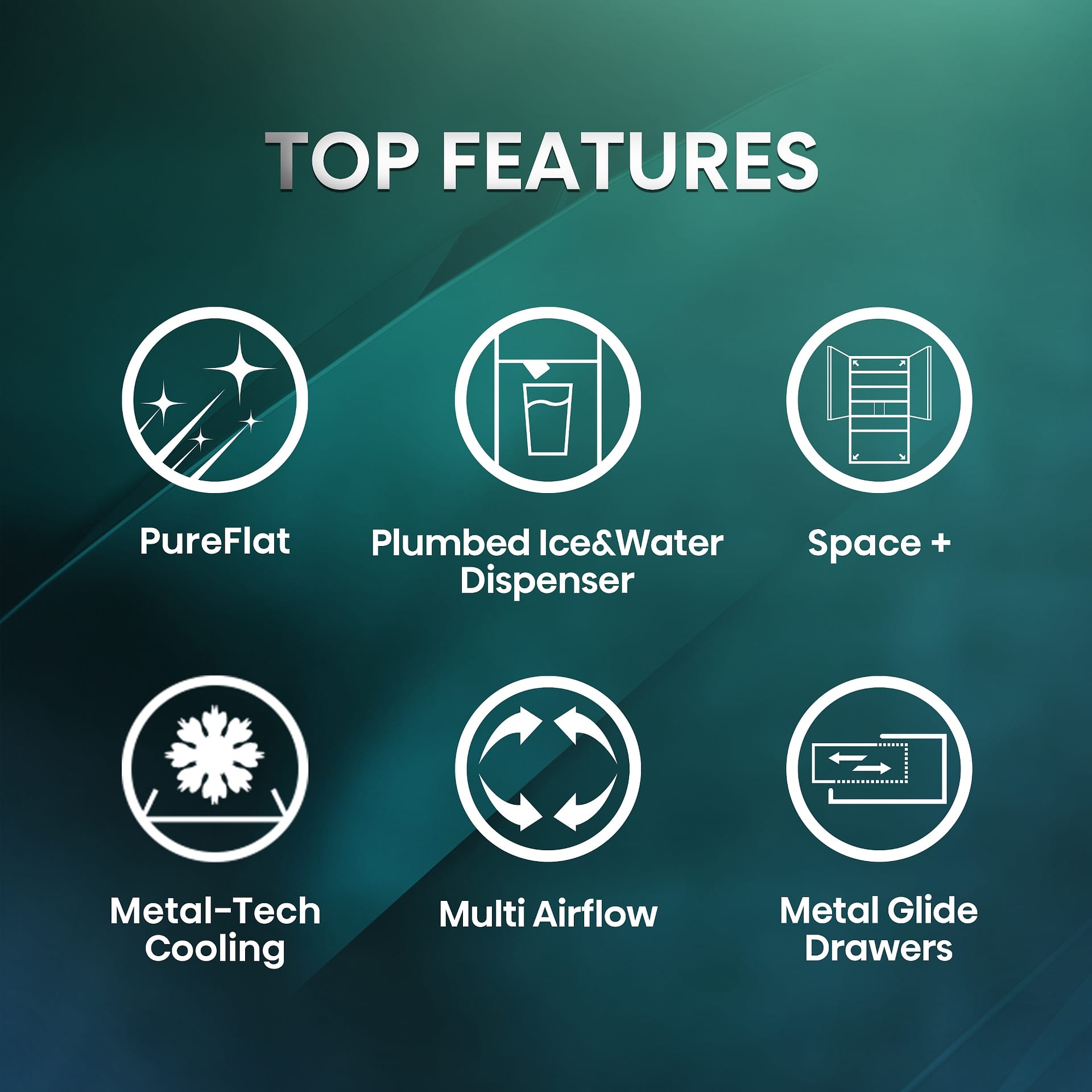 This black steel French style fridge freezer by Hisense boasts a generous 634 litre capacity, providing plenty of space for all your groceries. Its frost free design means you’ll never have to manually defrost, saving you time and effort. The convenient water dispenser and automatic ice maker ensure you always have refreshing drinks on hand. Keep your new appliance looking sleek and clean with minimal maintenance with the anti-fingerprint design. Featuring a durable inverter compressor, this fridge has stable temperature control and enhanced energy efficiency, reducing your electricity bills. Innovative features throughout are designed to keep your food fresh for longer, making this fridge freezer a practical and stylish addition to any kitchen.