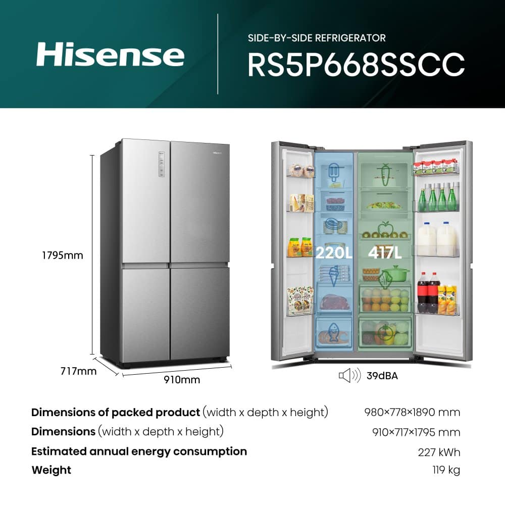 Hisense RS5P668SSCC American Fridge Freezer Non Ice & Water – SILVER