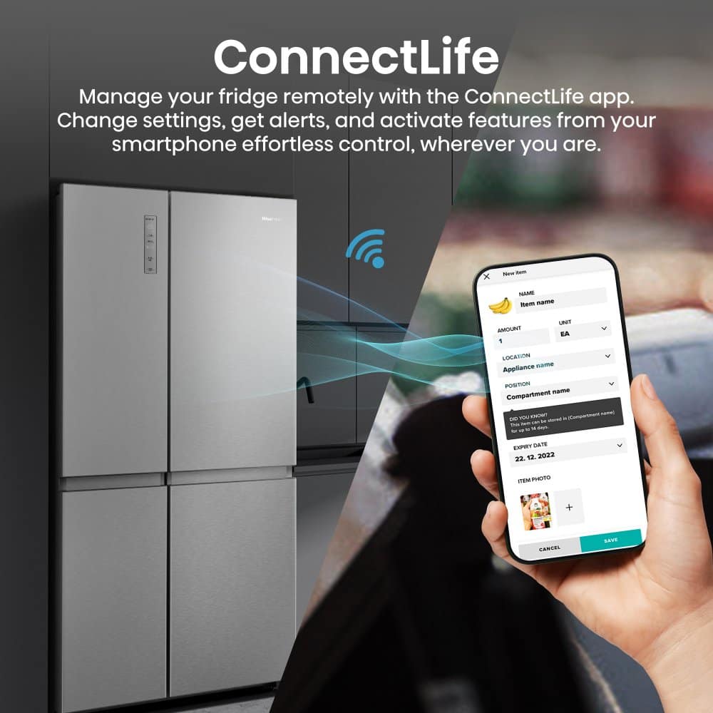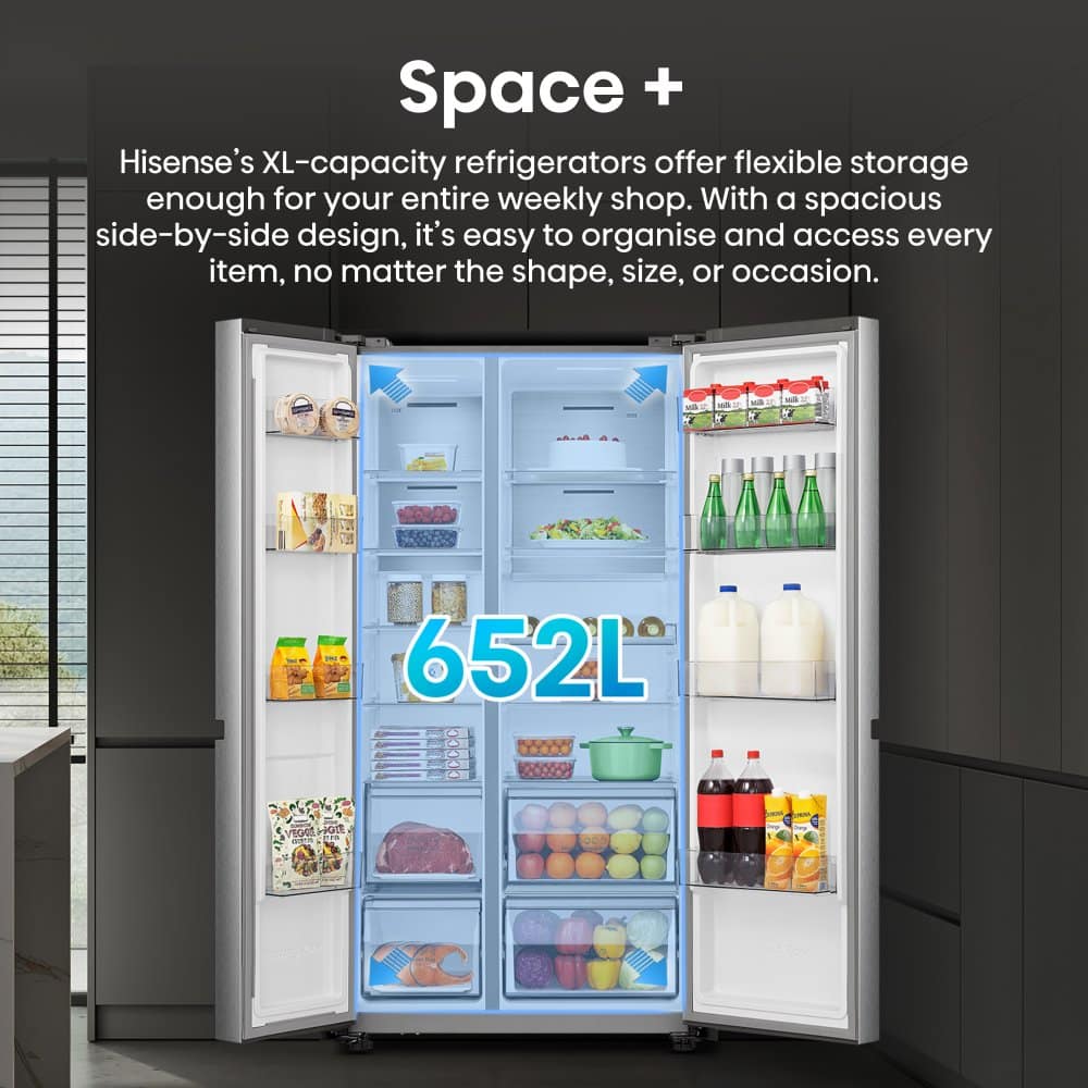 This Hisense American style fridge freezer, finished in stainless steel effect silver, offers a massive 652 litre capacity to meet all your weekly shopping needs. This appliance is full of fantastic features that make your life simpler whilst ensuring your food stays fresh.