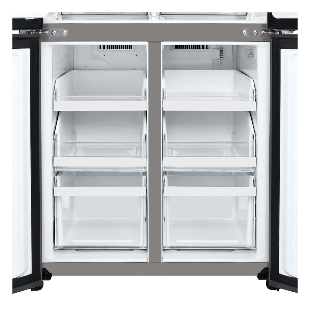 This superb silver French style fridge freezer from LG is filled with the latest innovative design and technology. At 835mm wide, it is slightly narrower than most American style fridge freezers.