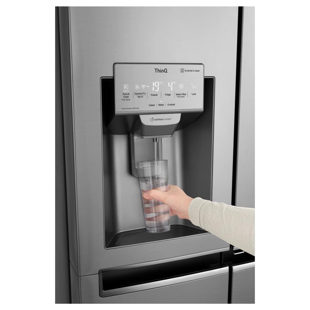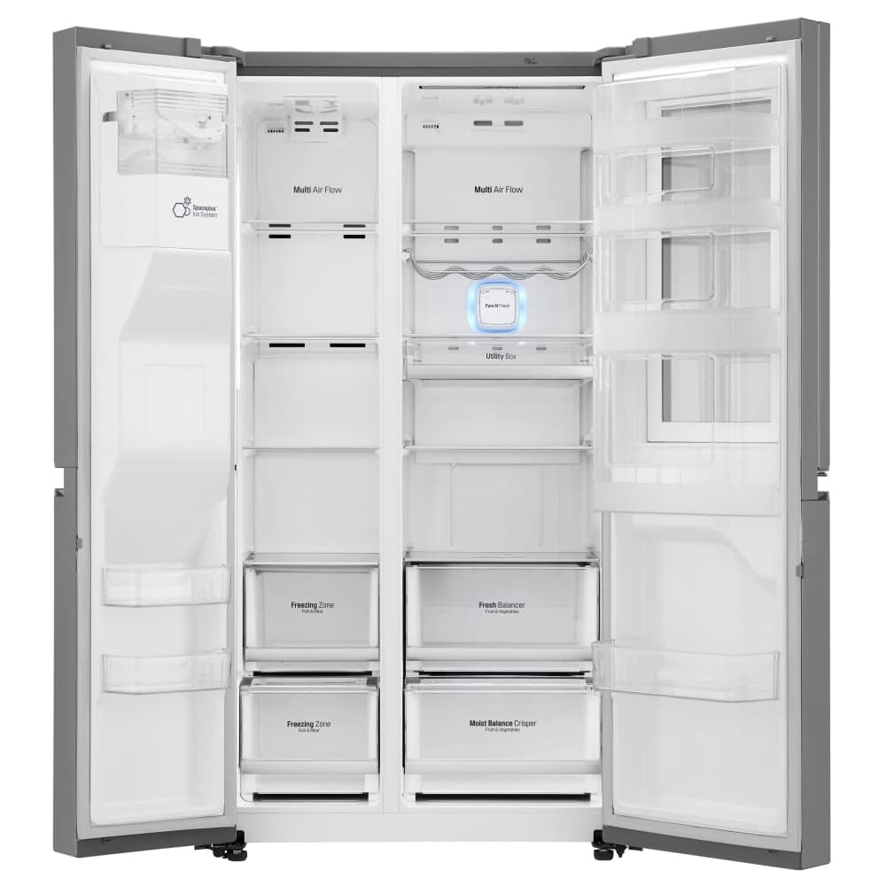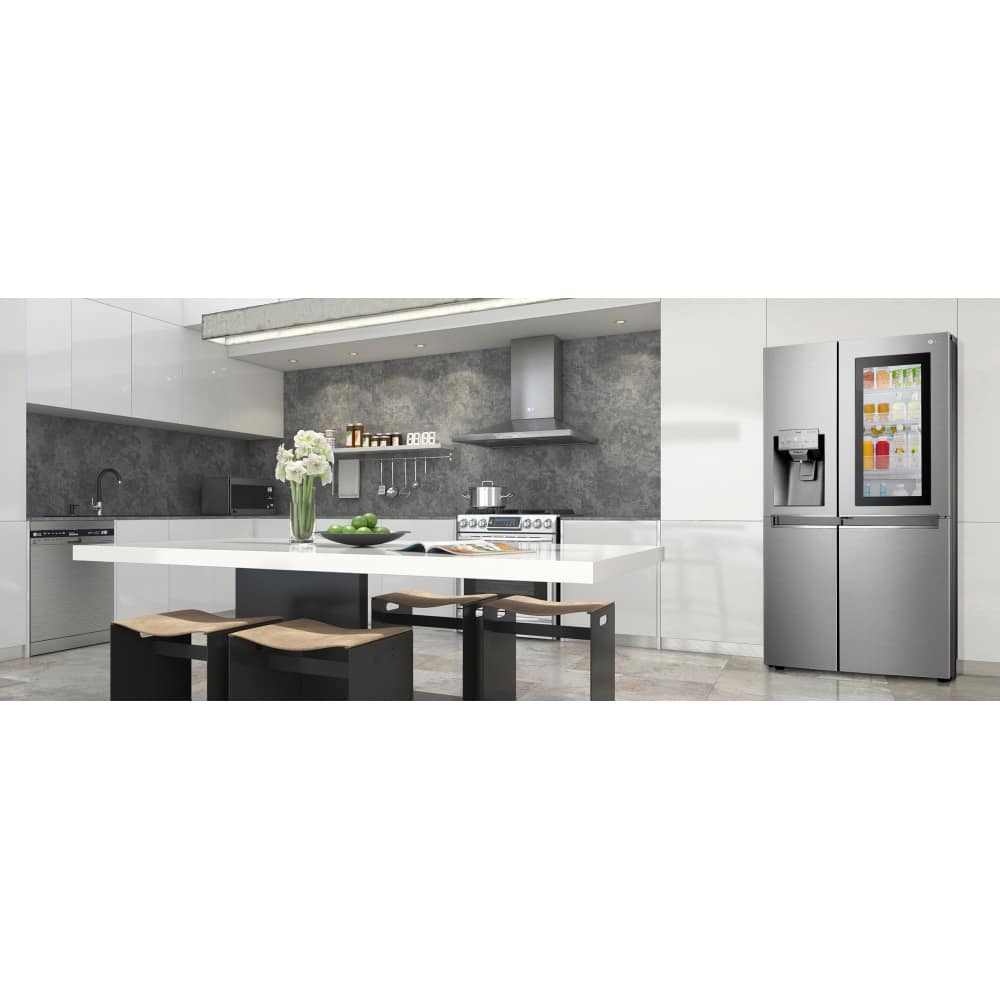 Keep your favourite food and drink readily available with this fantastic InstaView American style fridge freezer from LG. This model has a sleek mirrored glass panel that illuminates with two quick knocks, allowing you to see inside the easy access compartment. Once you have spotted what you’re looking for simply open the easy access door which reduces cold air loss to help keep food fresher for longer. On top of that the Pure n Fresh filter recirculates air through a fan, deodorising the air for a pleasant smell from your fridge at all times.