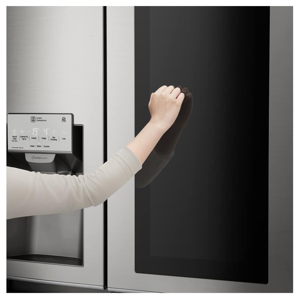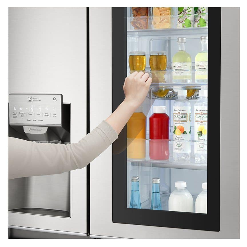 Keep your favourite food and drink readily available with this fantastic non plumbed InstaView American style fridge freezer from LG. This model has a sleek mirrored glass panel that illuminates with two quick knocks, allowing you to see inside the easy access compartment. Once you have spotted what you’re looking for simply open the easy access door which reduces cold air loss to help keep food fresher for longer.