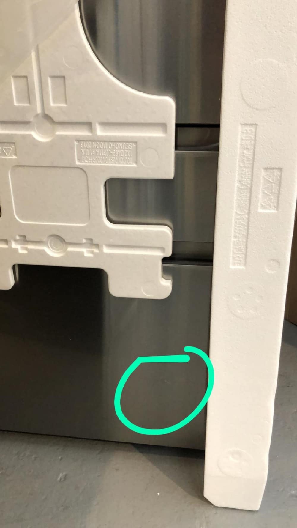 This model has been on display in our showroom. It has a very small dent to the bottom freezer drawer. It is in full working order and is covered by the manufacturer’s full warranty