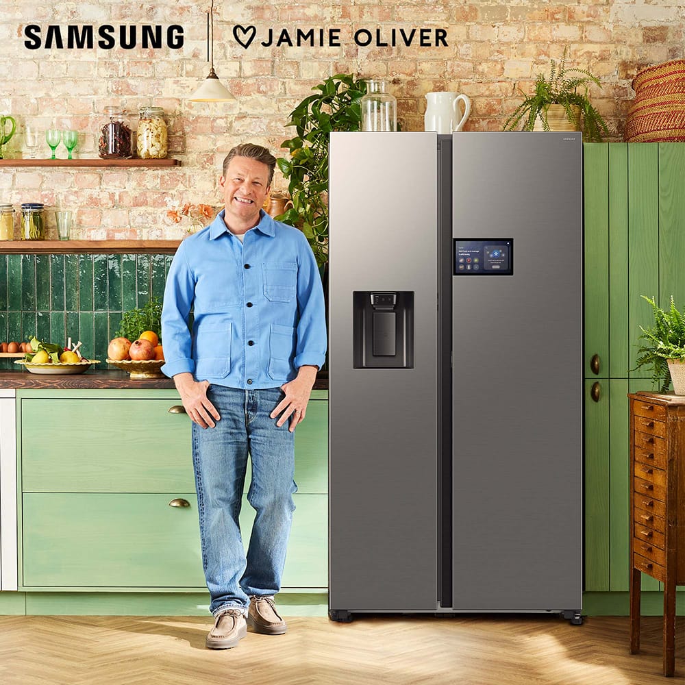 Feast your eyes upon this stunning Samsung Bespoke American style fridge freezer, finished in silver. All-Around Cooling ensures every spot in the fridge has a constant temperature and your food stays fresher for longer. A metal cooling plate in the fridge also helps to maintain a cold temperature, restoring heat loss quickly. Standing at 178 cm tall, the RS90F64EDTEU boasts a fantastic 621 litre total capacity and offers the perfect setup for families who love to stock up on food. With the fridge and freezer sections standing side by side instead of on top of each other, this Samsung refrigerator offers easy access to both fresh and frozen food. With interior LED lights giving full view of a range of glass shelves and drawers, you’ll never loose sight of anything again. Better yet, this Samsung fridge freezer has a plumbed water & ice dispenser integrated into the front left door so you have access to chilled water and ice whenever you want!