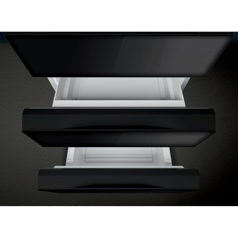 This fantastic French style fridge freezer from Siemens is finished in black glass with a dot pattern. It offers 491 litres of space, which makes it perfect for busy kitchens and families. It’s frost free, which means that you won’t have to manually defrost ever again, and as the interior is kept evenly cool using Multi Air Flow systems, your food will stay fresher for longer. Using the Home Connect system, you can monitor it remotely using an enabled smartphone or tablet and a suitable WLAN connection.
