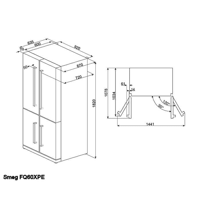 Smeg FQ60XPE Four Door Fridge Freezer Non Ice & Water – STAINLESS STEEL