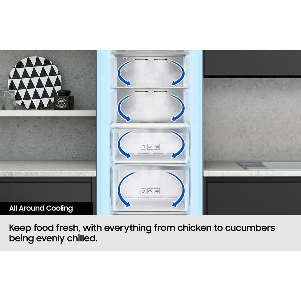 This freestanding frost free freezer from Samsung is everything you want from a freezer and more! With 323 litres of space, there’s enough room for all your frozen groceries and all those special snacks on top. It has Total No Frost and All Around Cooling, features which will keep your food completely cool and completely free of frost at all times. This freezer is designed to fit seamlessly into your kitchen and looks great paired with the matching larder fridge.