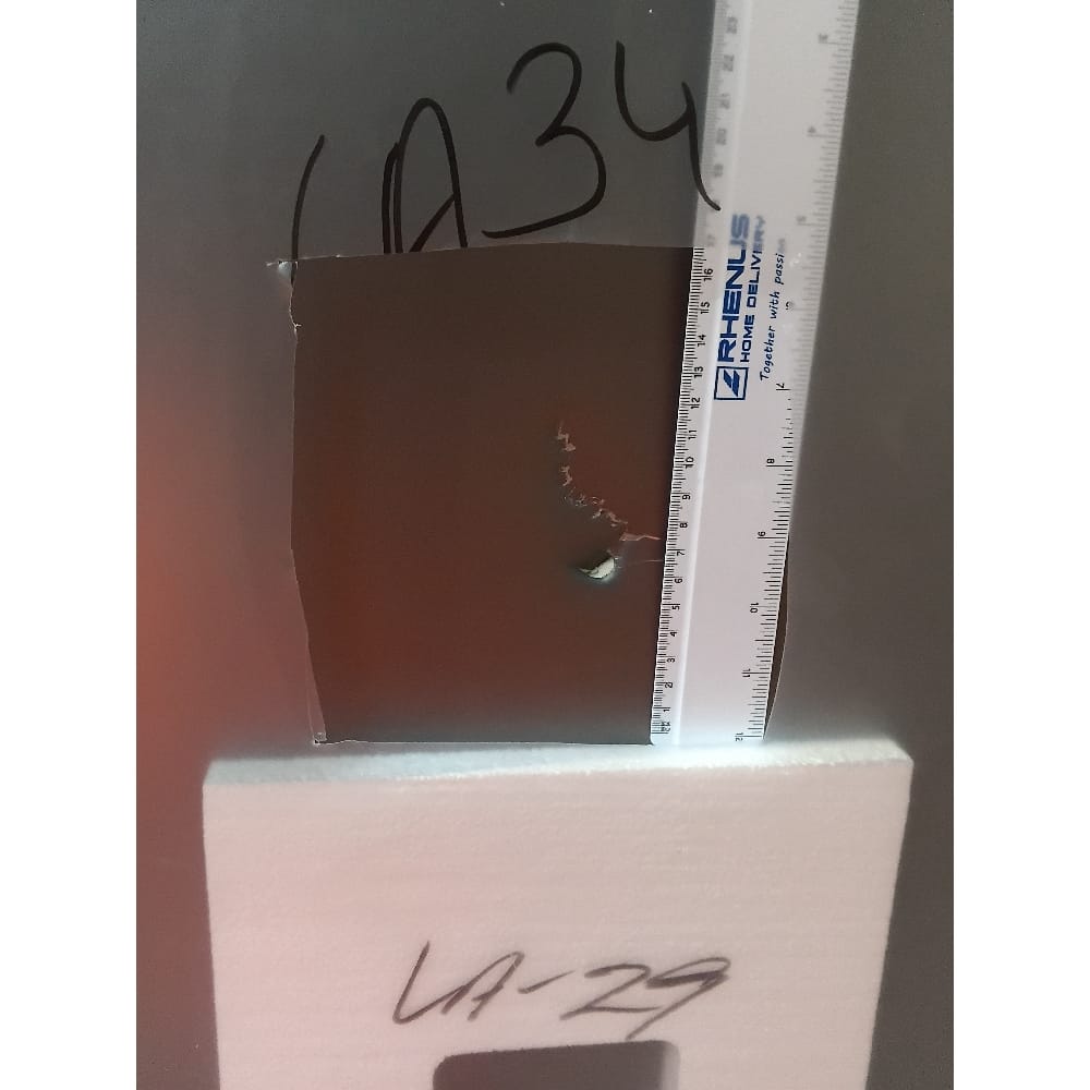 This product is damaged. It has a dent and scratches on the right hand side as shown in the second image.