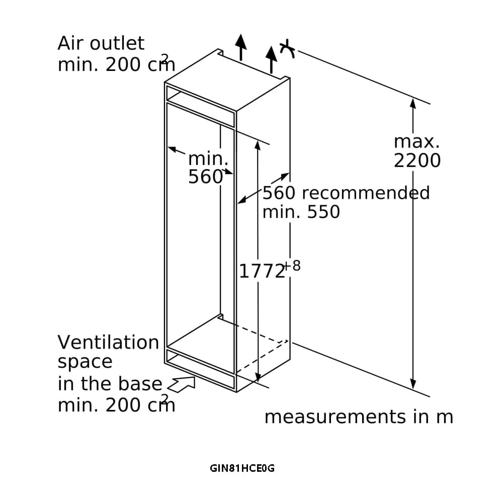 Bosch GIN81HCE0G 177cm Series 8 Integrated In Column Frost Free Freezer