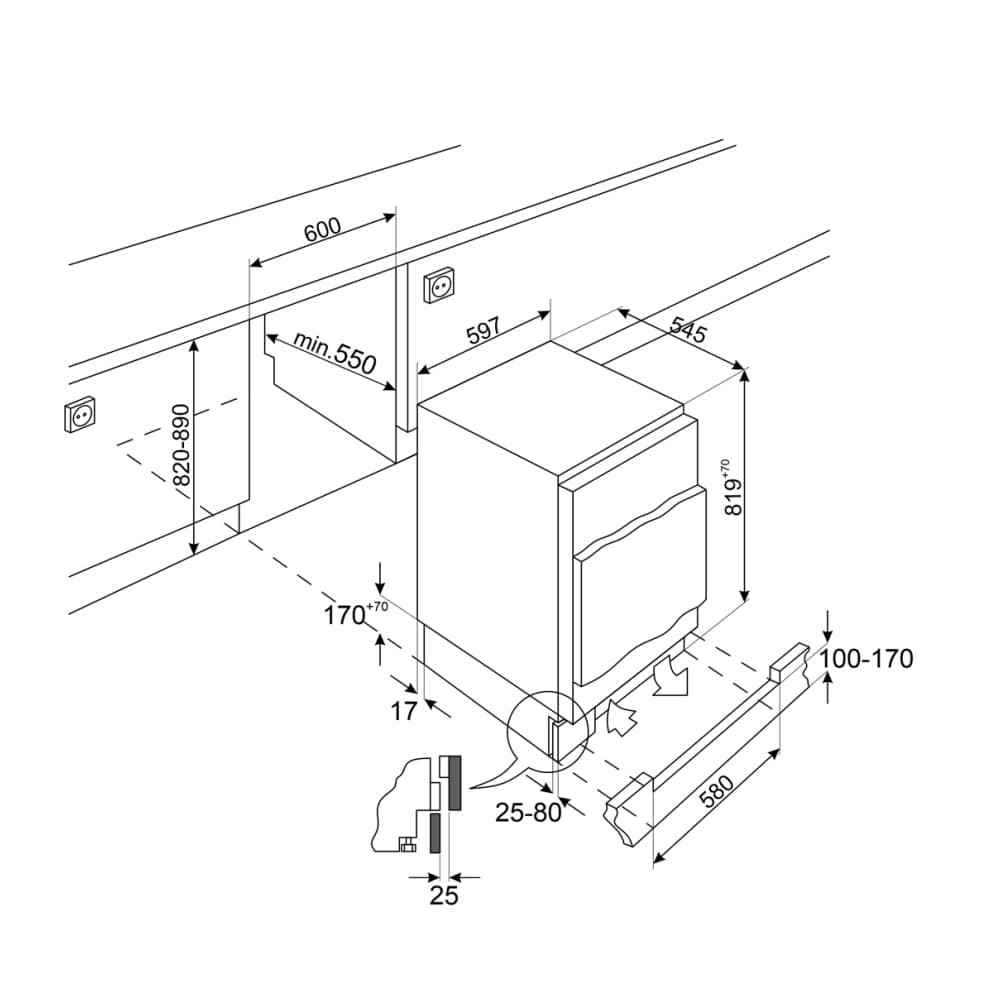 This superb integrated built under freezer from Smeg is designed to be fitted under your worktop with a furniture door on the front to match the rest of your kitchen. It has an impressive 95 litres of capacity.