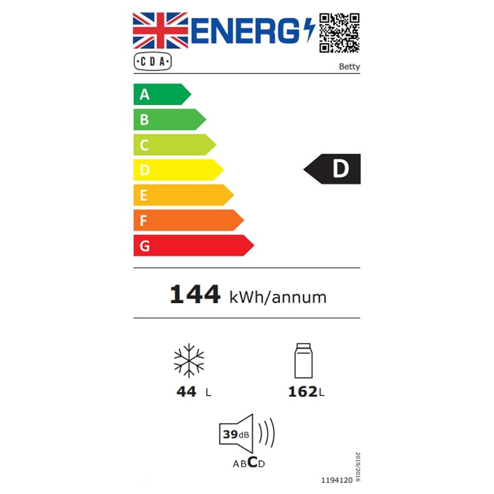 Introduce a retro flare to your kitchen with this beautiful CDA fridge freezer! With a width of 55cm and an internal net capacity of 206 litres, this fridge freezer fits perfectly into most kitchens, providing plenty of space for smaller households. The lower fridge section offers 162 litres of space across 4 moveable glass shelves and a salad crisper drawer. With additional adjustable in-door shelves, keep and eye on all of your favourite drinks and condiments. Lit with LED lighting, never lose sight of anything again! The upper freezer compartment offers 44 litres of capacity with a glass shelf to help you stay organised. This freezer needs to be defrosted manually. However, its 4 star rating helps to reduce ice build-up so you don’t lose control over your space. Finished in cream, this CDA fridge freezer embodies retro style and sophistication.