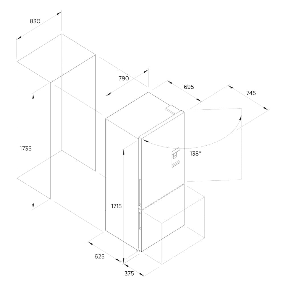 h1715 x w790 x d695mm (excluding handles)