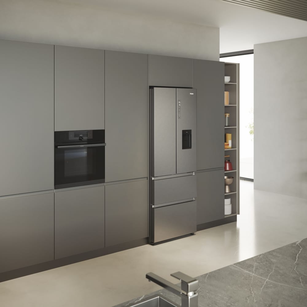 This Haier frost free fridge freezer will quickly become your new kitchen obsession! Standing at 70cm wide, with an impressive 444 litre capacity, this fridge freezer certainly delivers on both space and style! Haier have pulled out all the stops with their Total No Frost technology, so no more painful manual defrosting! With a non-plumbed water dispenser, this fridge freezer from Haier is sure to be the focal point of any modern kitchen.