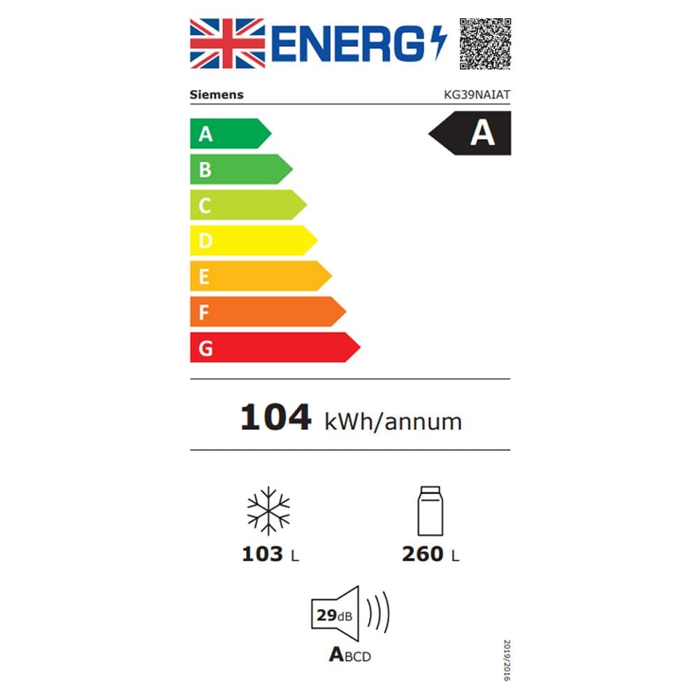 With plenty of room and offering hassle free use, the brilliant KG39NAIAT from Siemens is perfect for the busy family kitchen. With the No Frost freezer you can ensure all your frozen favourites are kept perfectly stored, without the inconvenience of having to defrost the interior, and as it uses Multi Airflow cooling an even temperature is maintained throughout. Perfect for creamy ice cream in the freezer and juicy berries in the fridge. To keep your fruit and vegetables even more fresh, the Hyper Fresh salad drawer controls the humidity using sliders for optimum conditions; no more soft peppers or soggy lettuce! And your meat and fish is catered for as well, thanks to the 0°C box, which keeps the temperature inside the container very low so you can keep items inside for up to twice as long as in a typical fridge.