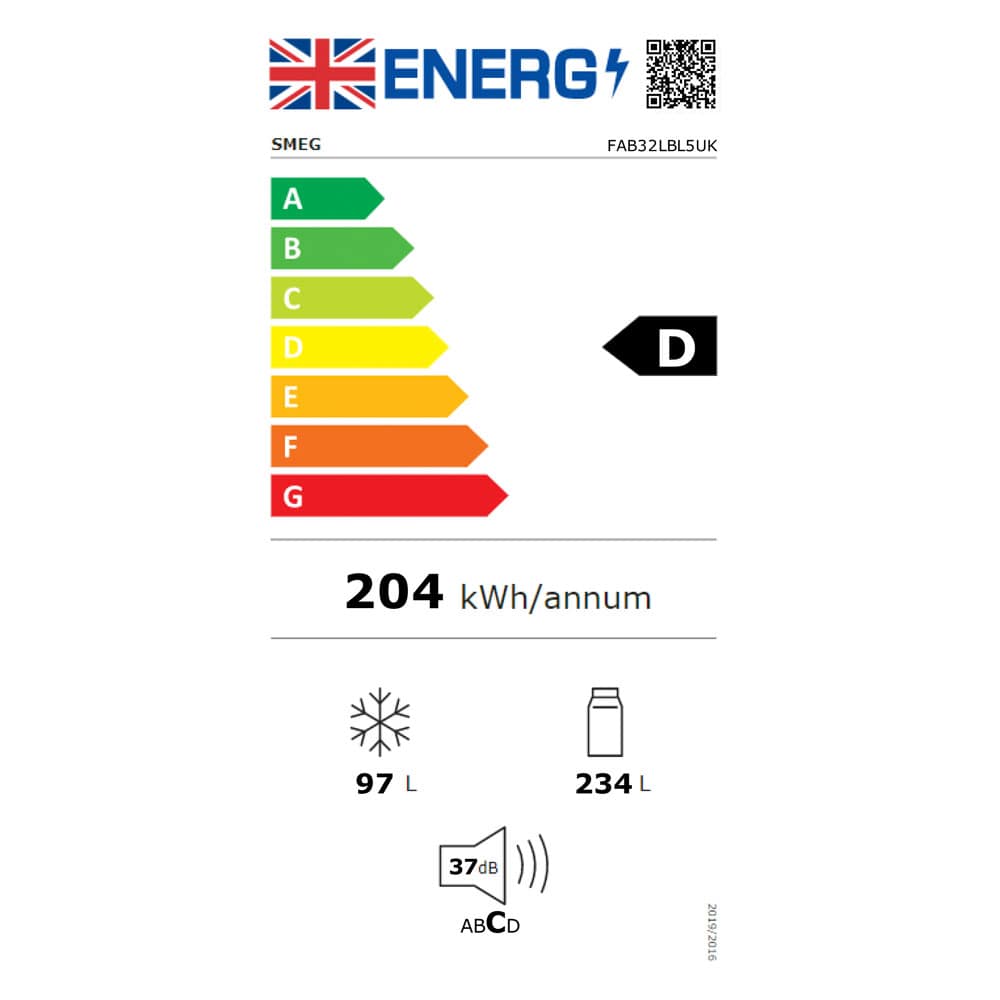 Smeg FAB32LBL5UK 60cm Retro Frost Free Fridge Freezer Left Hand Hinge – BLACK