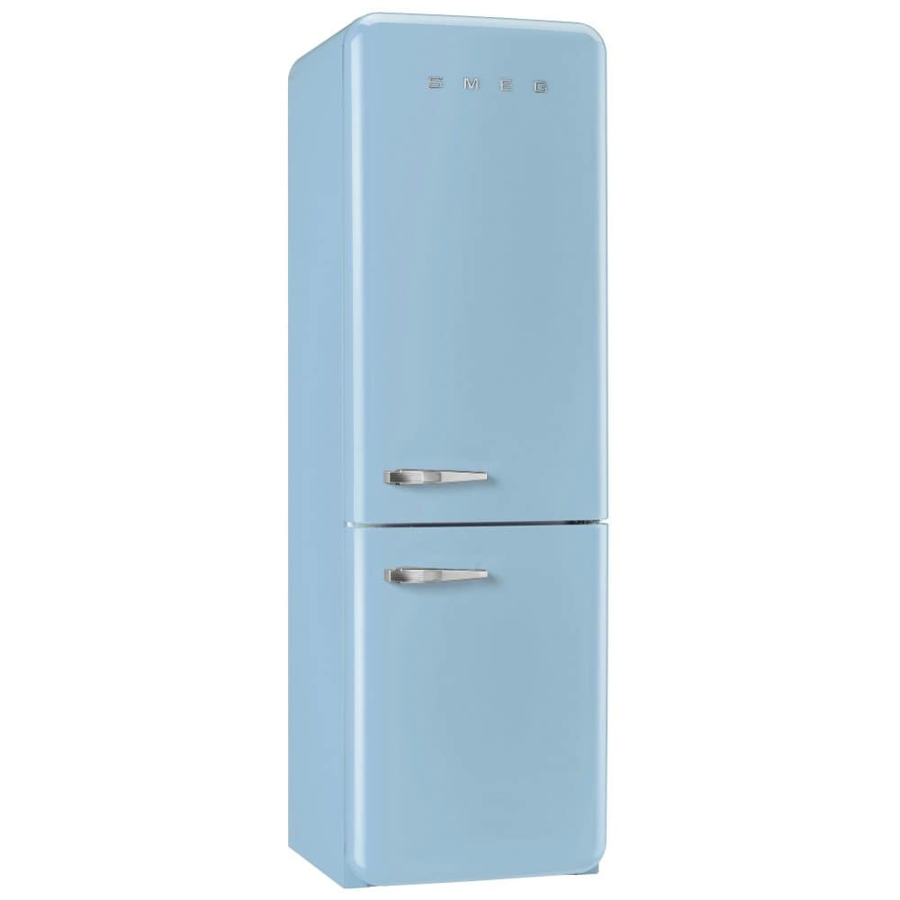 This superb freestanding retro frost free fridge freezer from Smeg is 60cm wide and 193cm tall. It has an A++ energy efficiency rating and boasts an impressive total capacity of 304 litres. Finished in pastel blue it will complement any kitchen.
