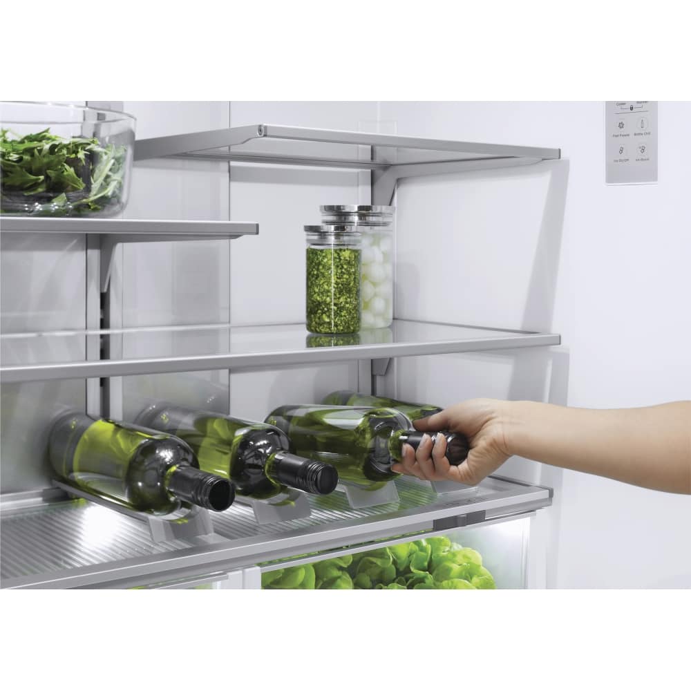 The RS9120WLJ2 integrated fridge freezer minimises gaps through heavy-duty inline hinges and adjustable doors enabling minimal 4mm gaps to create consistent lines throughout your kitchen. It fits flush with cabinetry to minimise disruption and deliver design freedom through stainless steel or custom panel options.
