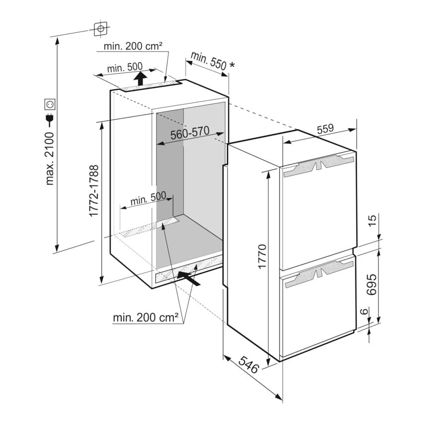 Dimensions: h1772-1788 x w560-570 x d550mm