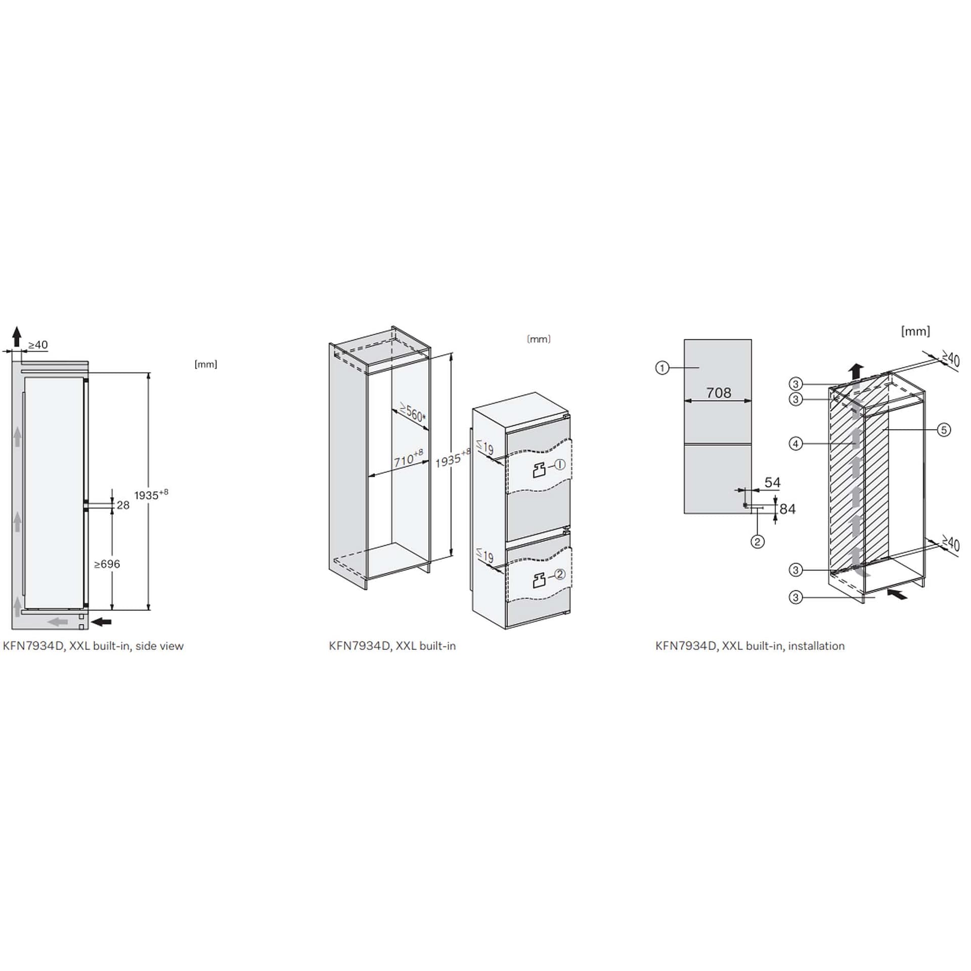 Miele KFN7934D 194cm x 71cm Integrated 70/30 Frost Free Fridge Freezer