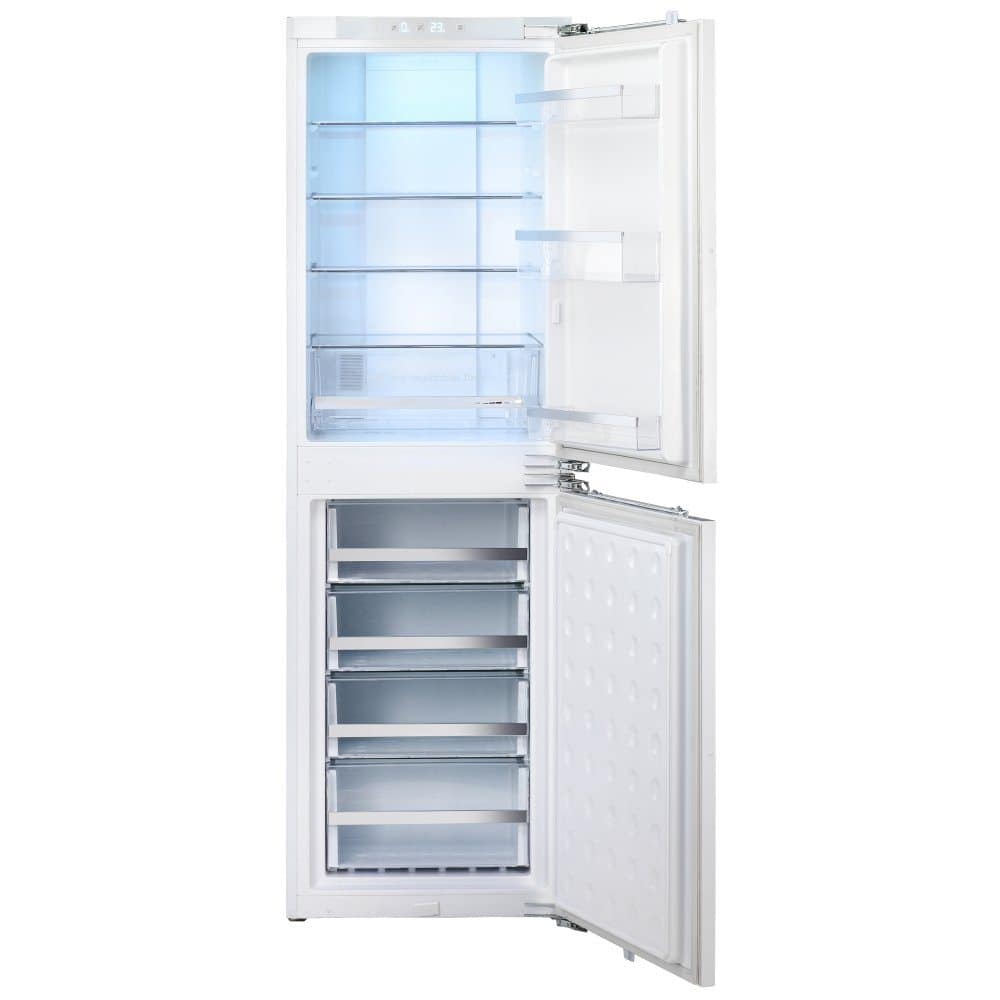 This stunning integrated fridge freezer from Rangemaster is finished to a really high standard. The interior shelves and drawers are all finished with lovely chrome edging and bright LED lighting illuminates the fridge interior. With a rather roomy 249 litre storage capacity, all your food will be well looked after. When you’ve done a grocery shop there is a Super Cool function for quickly chilling the food to maintain the even temperature. There is a Fast Freeze option to do the same as Super Cool in the freezer. It has an LED display and with a fantastic A+ energy rating it is super economical too. Rangemaster have spoilt us!