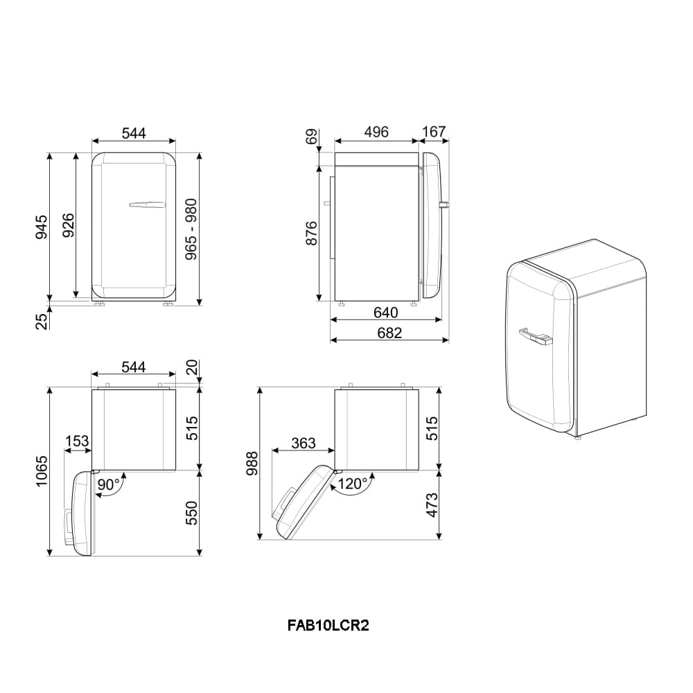 Dimensions: h960 x w543 x d632mm (excluding handle)