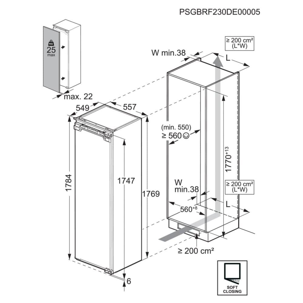 AEG NSK6D181EC 177cm Series 6000 Integrated In Column Larder Fridge