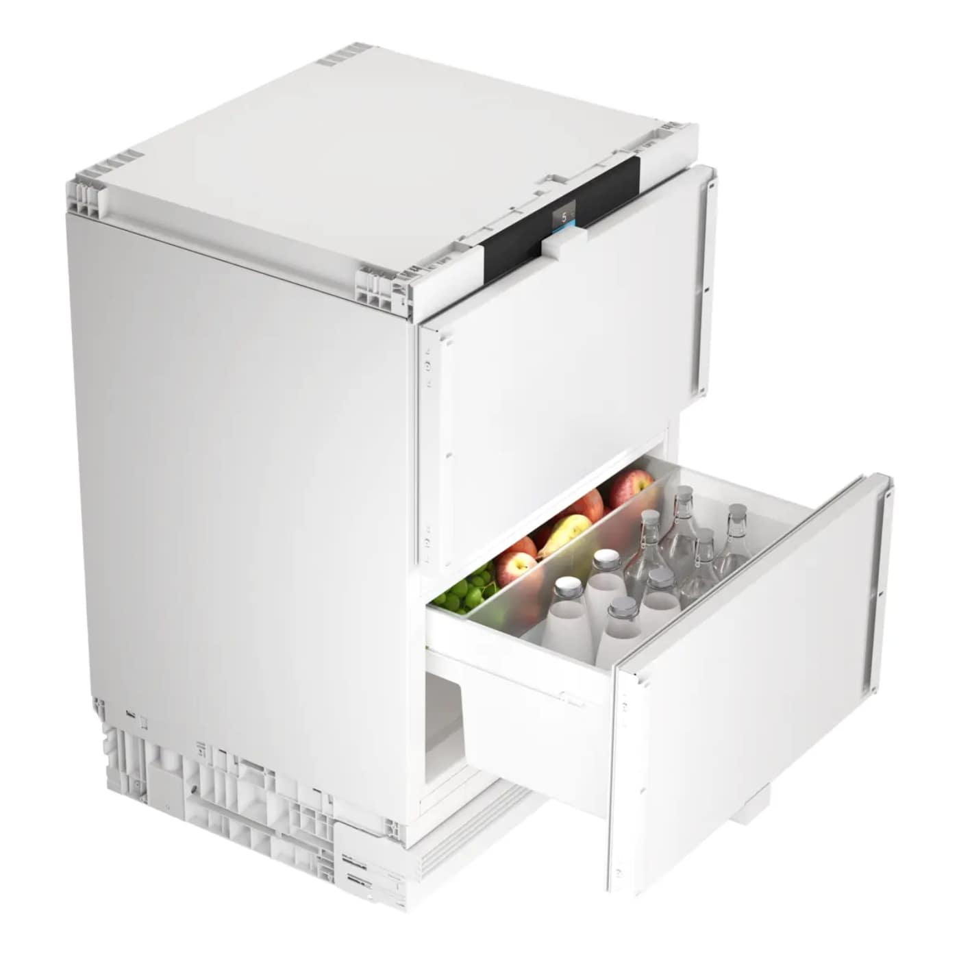 Take a fresh look at refrigeration with the Liebherr URDD375I. This fridge fits under a worktop with a furniture door attached – but it is anything but ordinary! Two drawers which can be set at different temperatures slide open on tracks allowing superb access to the inside. It is generous in capacity as well, with a roomy 119 litres of space and as it’s built by Liebherr, you know that the quality and performance will be exceptional.