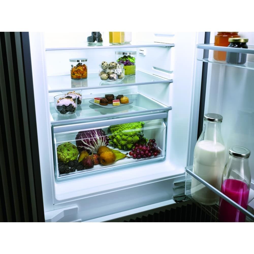 This superb integrated fridge from Miele is designed to be fitted into a tall housing unit with your furniture door on the front to match the rest of your kitchen. It boasts an impressive 144 litres of capacity.