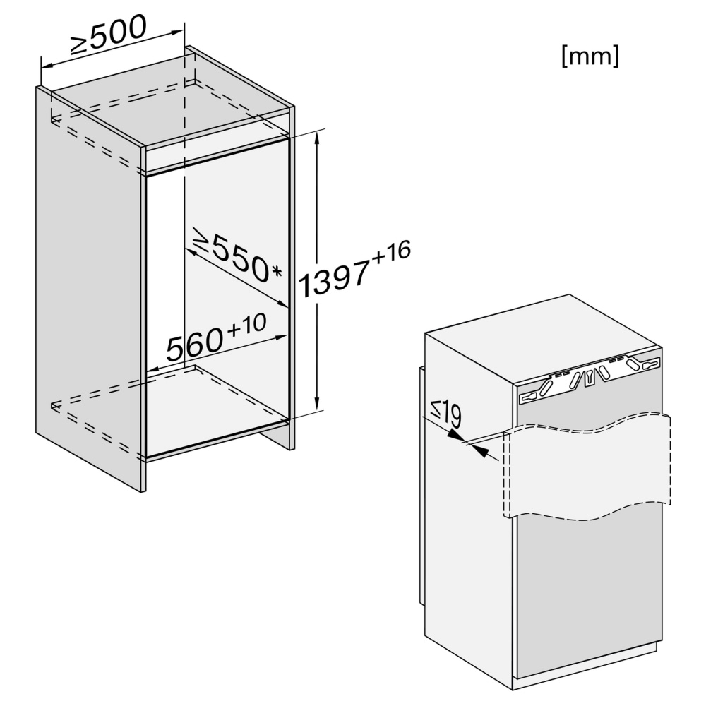 This superb integrated fridge from Miele is designed to be fitted into a tall housing unit with your furniture door on the front to match the rest of your kitchen. It boasts an impressive 236 litres of capacity.
