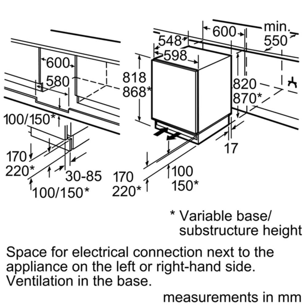 Create a streamlined look in your kitchen with this superb integrated built under fridge from Neff. Designed to be fitted under your worktop with a furniture door on the front this model will blend in effortlessly. With its 137 litre capacity it’s perfect for a smaller household and offers 3 glass shelves, 2 of which are adjustable giving you more flexibility.