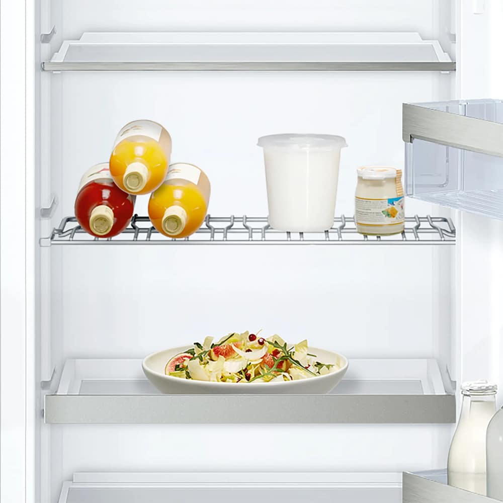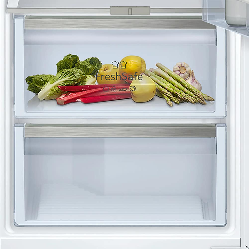 Everything you could need from an integrated fridge can be found in this superb larder fridge from Neff. Perfect for a large household, you can take full advantage of the 319 litres of space and the range of shelves and compartments to preserve your weekly shop. The brilliant Fresh Safe 2 compartment will help keep food fresh for up to twice as long and with the Fresh Sense system regulating the temperature it will be kept constant.