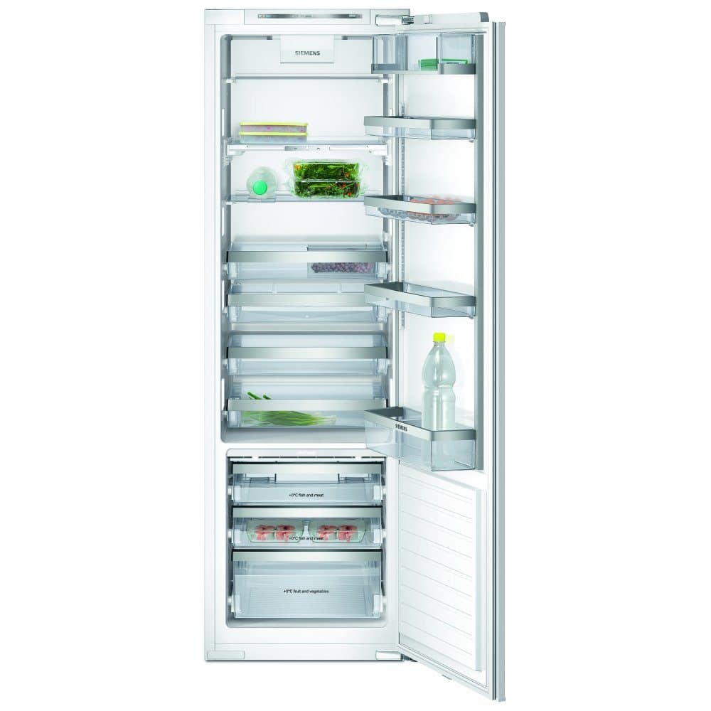 This outstanding integrated fridge from Siemens will not only fit seamlessly into your kitchen, installed behind a furniture door but also offer incredible cooling performance. Regulated by Fresh Sense technology, sensors monitor and regulate the temperature for even cooling, and a clever humidity controlled Hyper Fresh drawer for your fruit and vegetables assures you will have crisp lettuce and juicy tomatoes. The 0°C boxes cater for all your meat and fish storage as well, keeping the temperature low for storage for up to twice as long. With a huge 302 litres of space, with flexible storage options such as height adjustable shelves and easy lift glass, you can easily fit in all your favourite treats! There’s no worry about odours hanging around either, as the anti bacterial Fresh Air Filter helps neutralise smells. All with an efficient A++ energy rating, so your running costs can be kept nice and low as well, what’s not to like?
