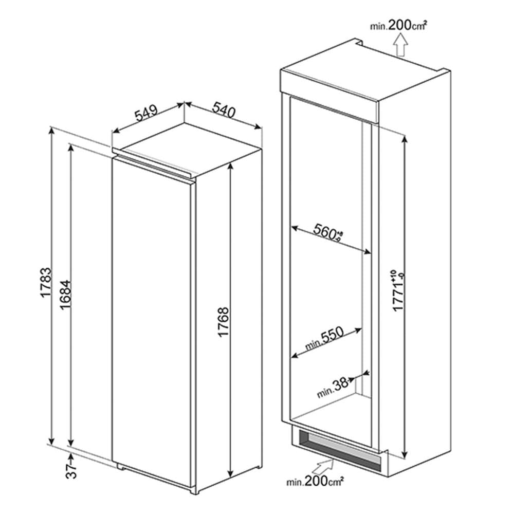 Smeg S7323LFEP 178cm Integrated In Column Larder Fridge